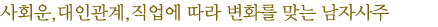 ±ÃÇÕ¿î¼¼»ó´ã¿¡¼ »ìÇÇ´Â ³²ÀÚ»çÁÖÇ®ÀÌ´Â ³²ÀÚ°¡ »çȸ¿î, ´ëÀΰü°è, Á÷¾÷¿¡ µû¶ó º¯È¸¦ ¸Â°Ô µÇ´Â ½Ã±â¸¦ »ìÇÇ´Â »çÁÖÇ®ÀÌ ÀÔ´Ï´Ù.