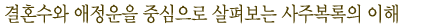 °áÈ¥»ó´ã ¾ÖÁ¤»ó´ã ºÎºÎ»ó´ã ó¿ë¿î»çÁÖ´Â °áÈ¥¼ö¿Í ¾ÖÁ¤¿îÀ» ÁßÁ¡À¸·Î »çÁÖÀÇ º¹·ÏÀ» »ìÇÇ°í °áÈ¥½Ã±â, ¹Ù¶÷±â, ÀÌ»óÇü µî ÃæÇϰųª ÆÄÇÏ´Â Àο¬¼ö¸¦ ¤¾îº¸´Â Ç®ÀÌ
